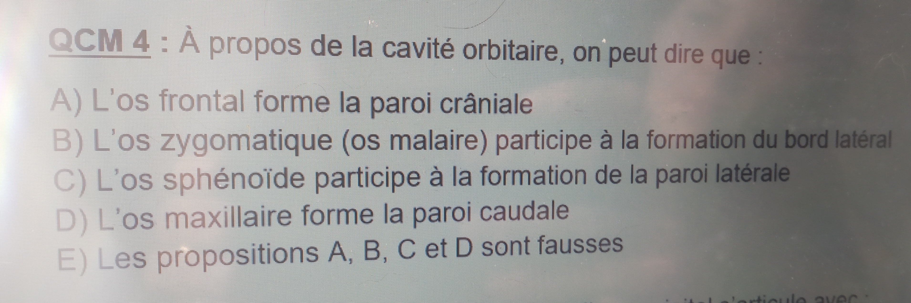Item D compté juste, moi j'avais mis faux en me disant que os maxillaire forme paroi médiale ou inférieure.