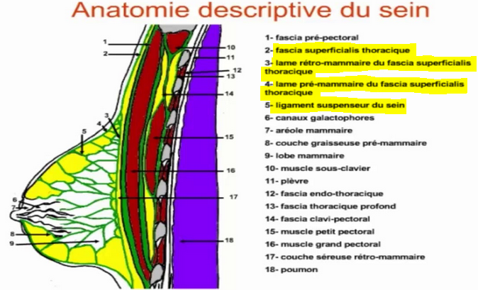 :arrow: Les ligaments suspenseurs du sein de sont que entre le fascia superficialis et la peau du sein