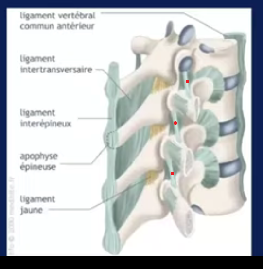 Pour moi le "ligament intertransversaire" devrait se trouver entre les processus transverses donc la où j'ai mis les petits points rouges.