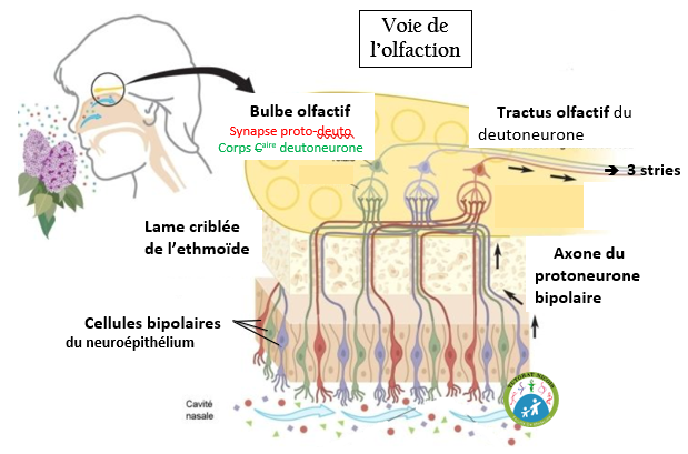 les réponses du prof m'ont embrouillé concernant la chaine de l'olfaction, je comprend pas avec les schémas du cours qui est qui. L'axone il traverse la lame criblée , le nerf olfactif aussi ? mais du coup qui véhicule l'info ?