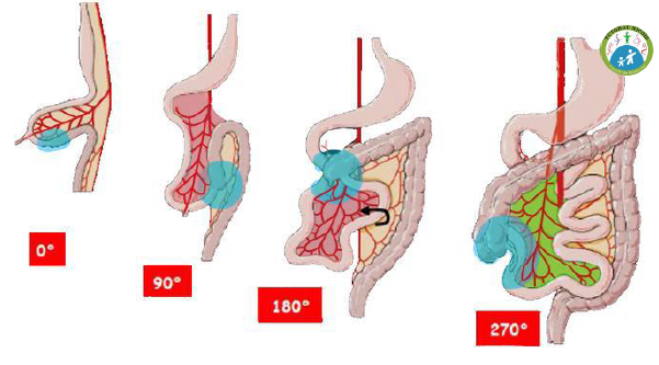 Après la 1ère et 2e rotation, on voit toujours la face gauche puisque le caecum n’a pas changé de côté, il était au