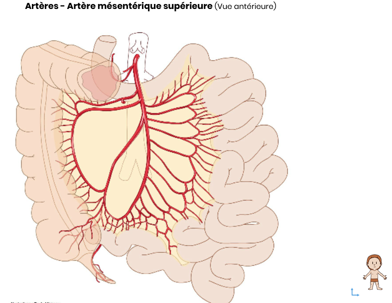 intestin grêle + côlon ascendant droit + partie droite du côlon transverse => tout ceci est vascularisé par l'