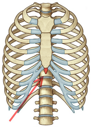 Voici la bête (représentée en rouge) : l'appendice xyphoïde du sternum