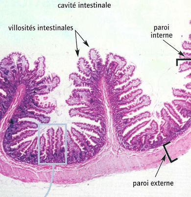 :arrow: Au niveau du duodénum et du jéjunum proximal, on a des villosités intestinales pour augmenter la surface