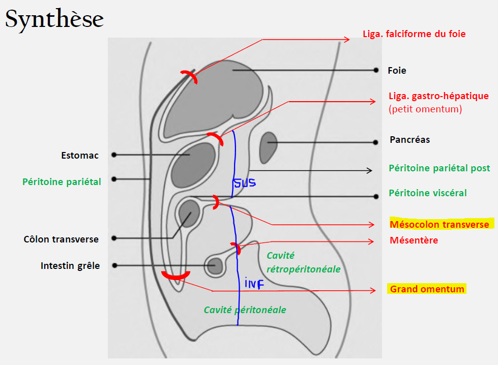 Il présente des structures de différentes formes : les omentums, les mésos, les ligaments.