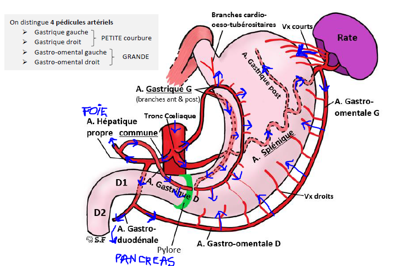 Est-ce que je me prends trop la tête pour quelque chose qui va enfaite partir directement par les vaisseaux droits et vasculariser l'estomac ? Ou est-ce que c'est juste une simplification de schéma pour faciliter les révisions de P1 ?