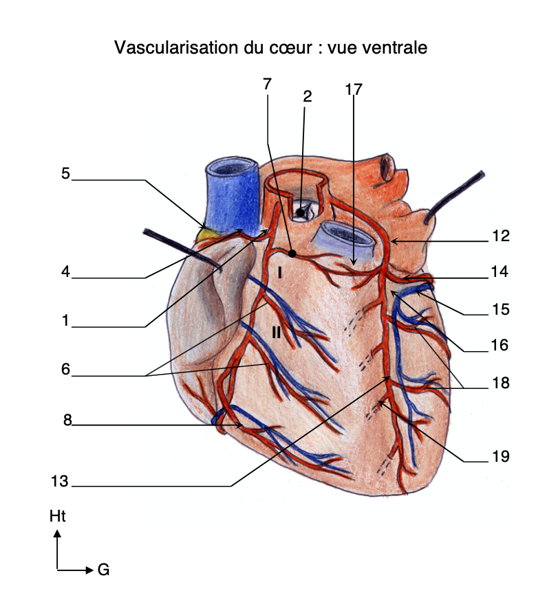Item D, je ne comprends pas pourquoi on voit l'origine de l'artere circonflexe, car elle est bien dessinée en pointillés pour montrer qu'elle passe derriere sur une vue anterieure. Errata ou alors si t'as un bon schema stp...