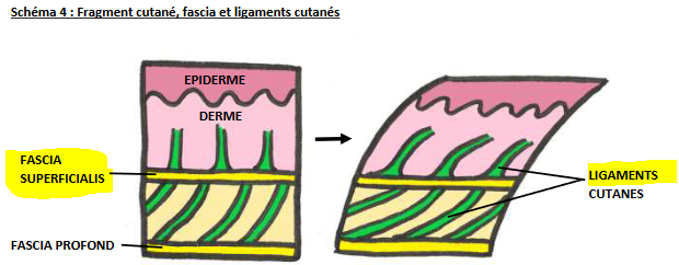 Il faut surtout retenir que le tout forme un bloc cohésif peau (derme) - fascia superficialis - fascia profond