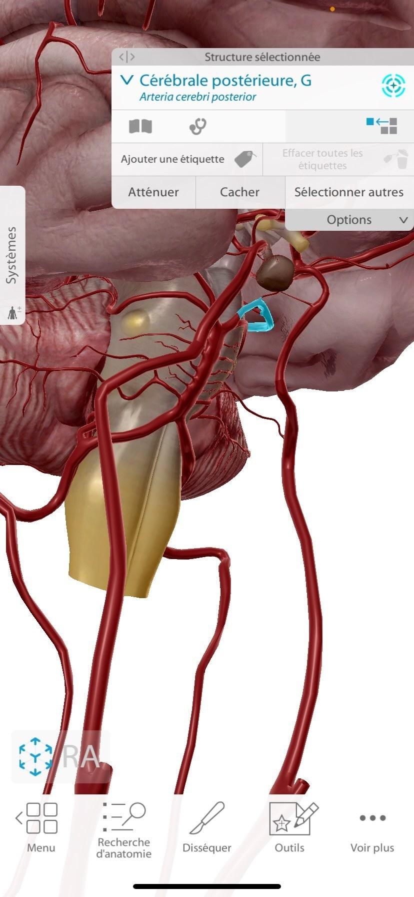 Du coup en cherchant sur l'appli d'anatomie il me semble même que c'est la carotide interne qui passe en avant de la cérébrale postérieure. cf pièce jointe