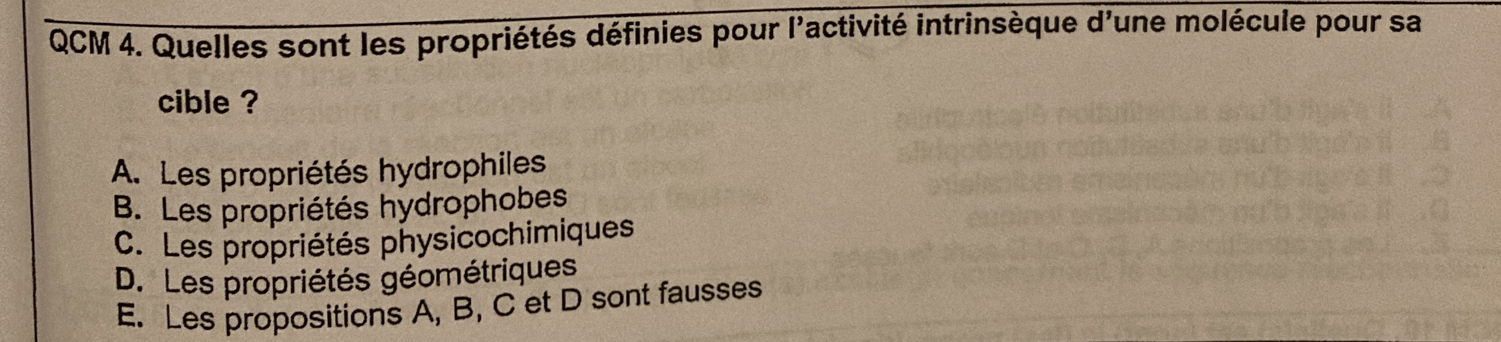 Et pour la 4, si j’ai bien compris, la C est fausse parce que l’activité intrinsèque dépend des propriétés physico-chimiques, mais elle définit les fonctions chimiques, la géométrie... ?!