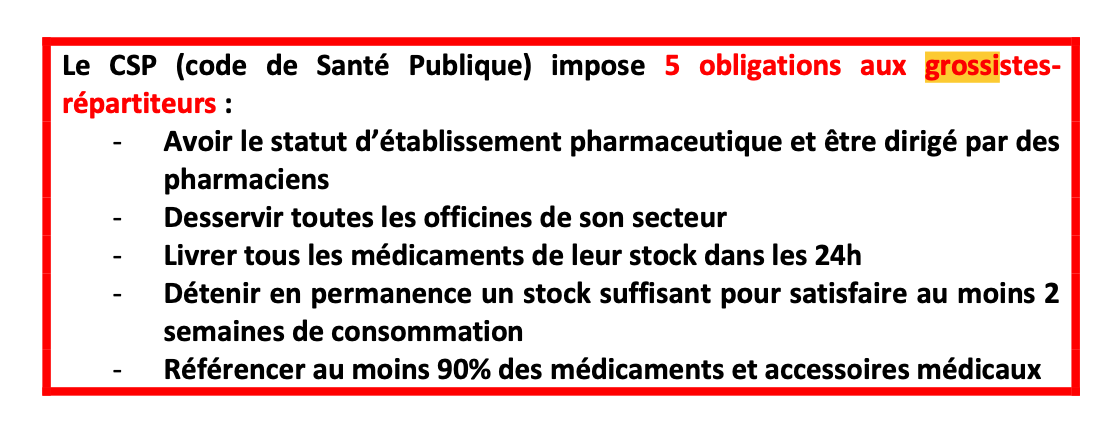 :arrow: Un établissement de grossiste-répartiteurs doit être notamment dirigé par un ou des pharmaciens