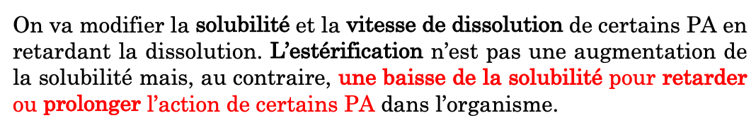 B) On peut utiliser un ester du principe actif.