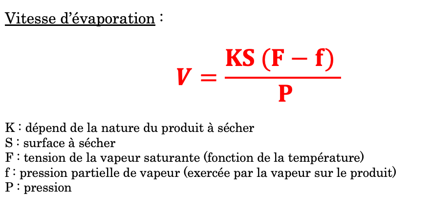 La vitesse de d’évaporation de l'eau à partir d'un produit traité par dessiccation :