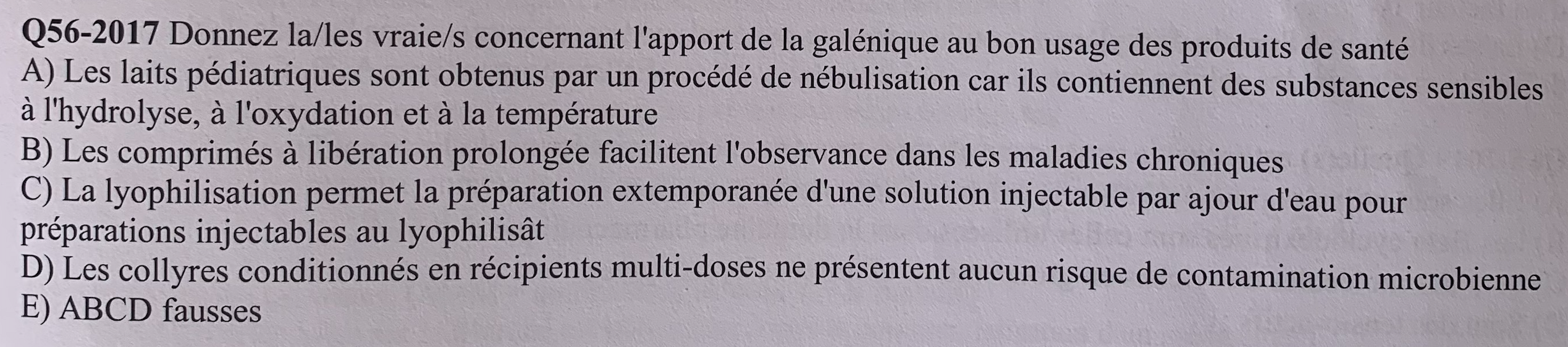 Le QCM 56 - Opérations pharmaceutiques - des annathèmes me parait HP. S'agit-il d'un QCM sur le cours galénique ?