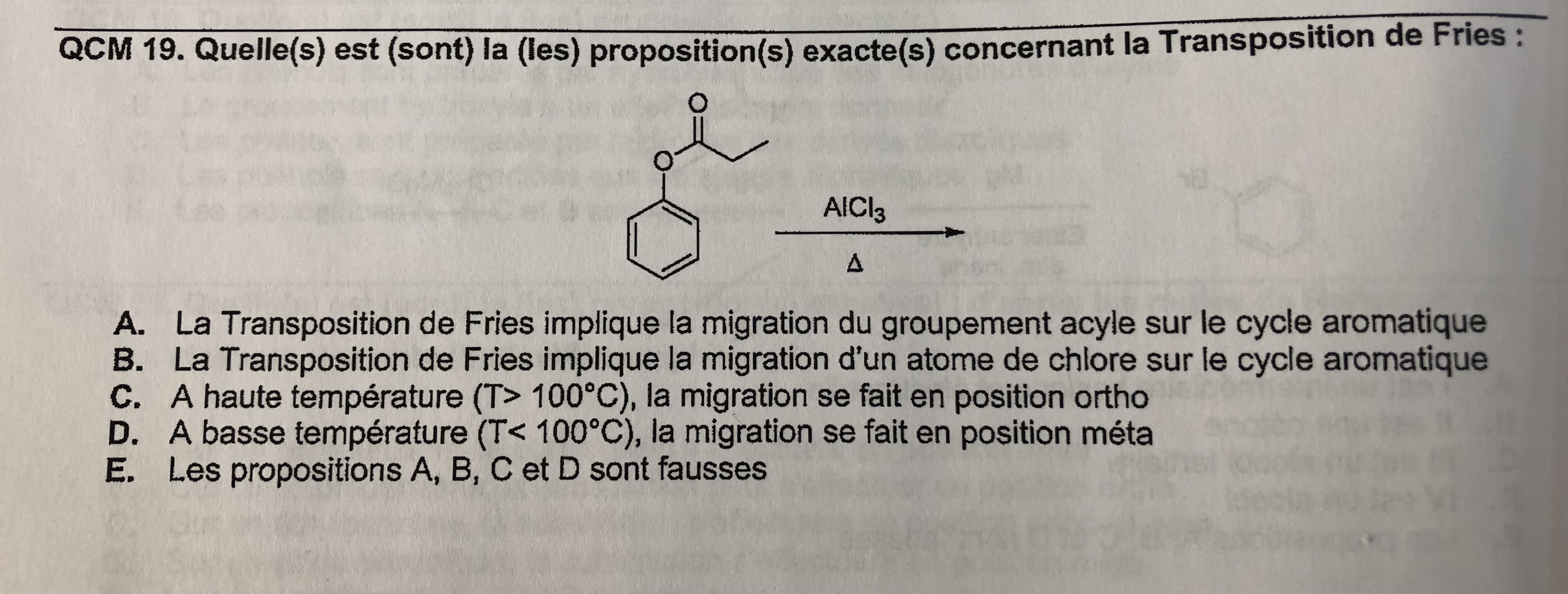 En me référant à la fiche sur les phénols, la transposition de Fries donne à T<100°C une migration en ortho et à T> 100°C donne une migration en para :
