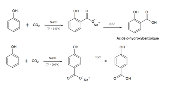 "b. On forme le composé ortho/para" et "c. On forme un acide hydroxybenzoïque", en effet, on obtient le groupement para quand on est > 200°C // ortho < 140°C, et du coup le C est faux (je pense en tout cas) parce que on doit bien préciser le groupement ortho, et pas seulement le 'hydroxybenzoique'.