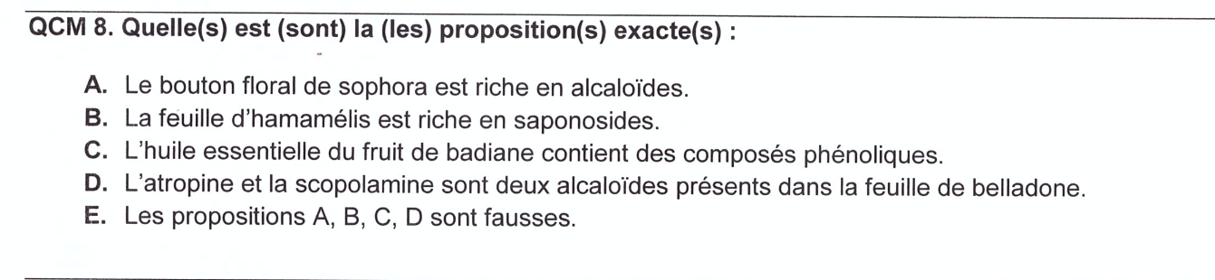 Et aussi pour l'item C, je me demandais s'il était pas Hors programme, parce que je ne trouve pas où on parle du fruit de badiane.