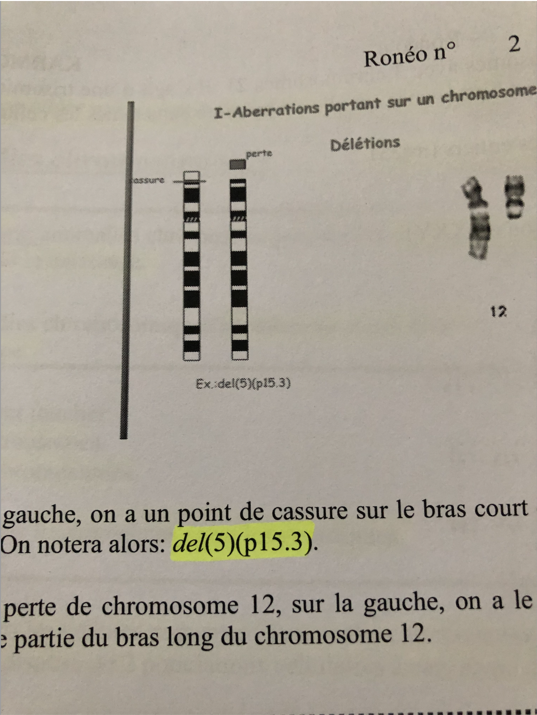 Dans le cours, la prof parle d'une délétion sur le chromosome 5 notée : del(5)(p15.3).