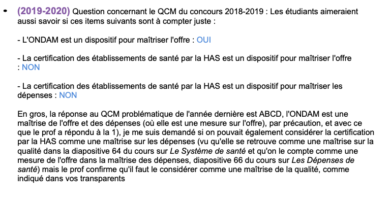 J'ai une question concernant les réponses de prof de l'an dernier, je suis perdue pourquoi la certification des établissements de santé ne permettent pas de maitriser ni l'offre (dans le sens où ils sont tenus à des normes qualitatives et de sécurité) ni les dépenses (dans le sens de l'EBM où ceux qui ne sera pas démontré efficace sera enlève et non mieux maitrisé ?)