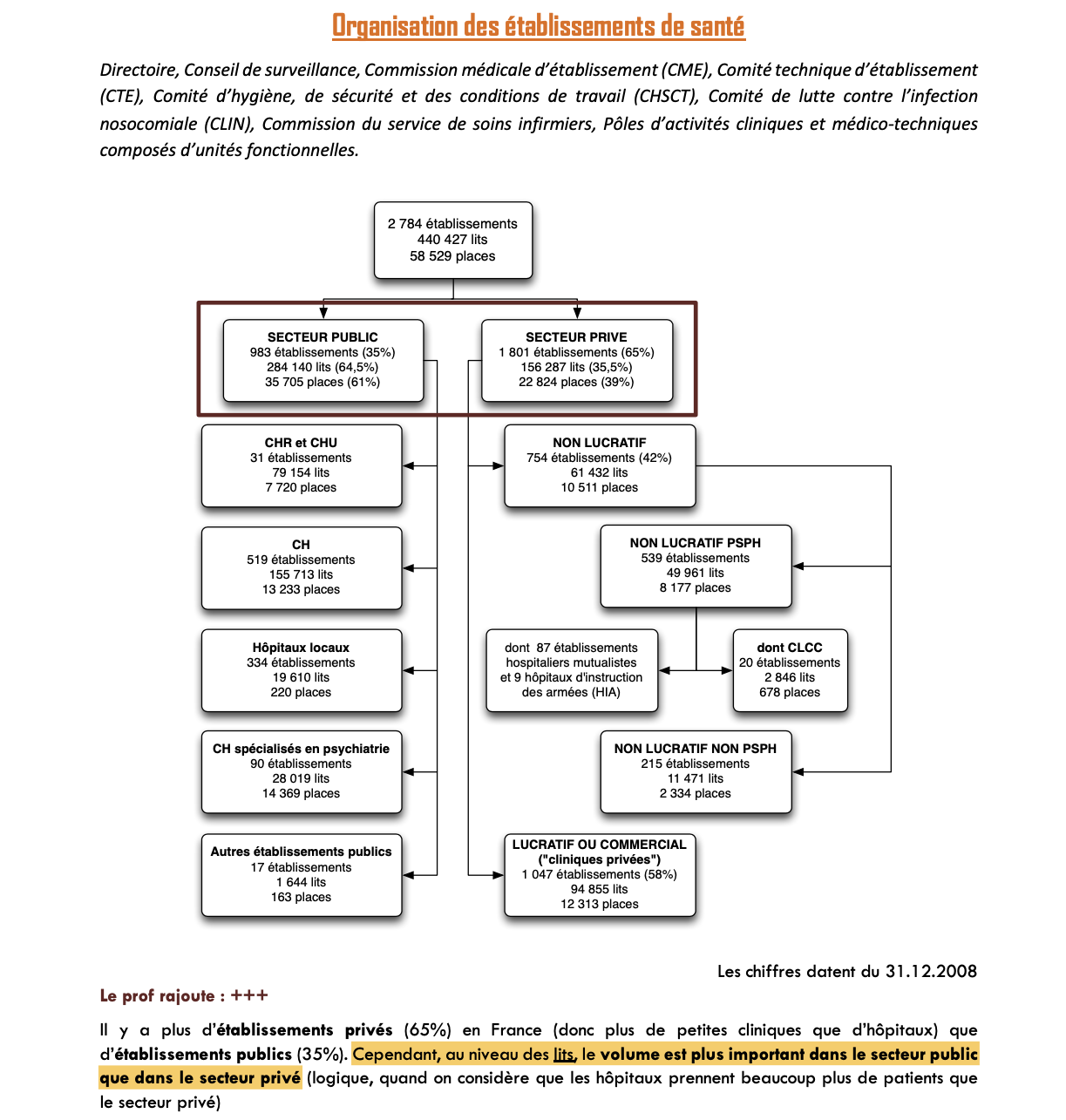 hello, dans ce cours, l'année dernière le prof a rajouté une notion concernant l'organisation des établissements de santé; dans un qcm du tutorat il me semble que vous avez compté faux le fait qu'il y ait plus de lits dans les établissements privés que publics, mais il y a marqué l'inverse dans mon cours (1/3 publics et 2/3 privés). Je trouve ça un peu illogique, j'aimerai une précision svp