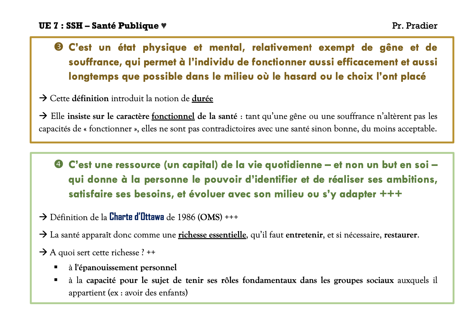 :arrow: La 3ème définition (de la santé) de l’OMS insiste sur le caractère fonctionnel de la santé.