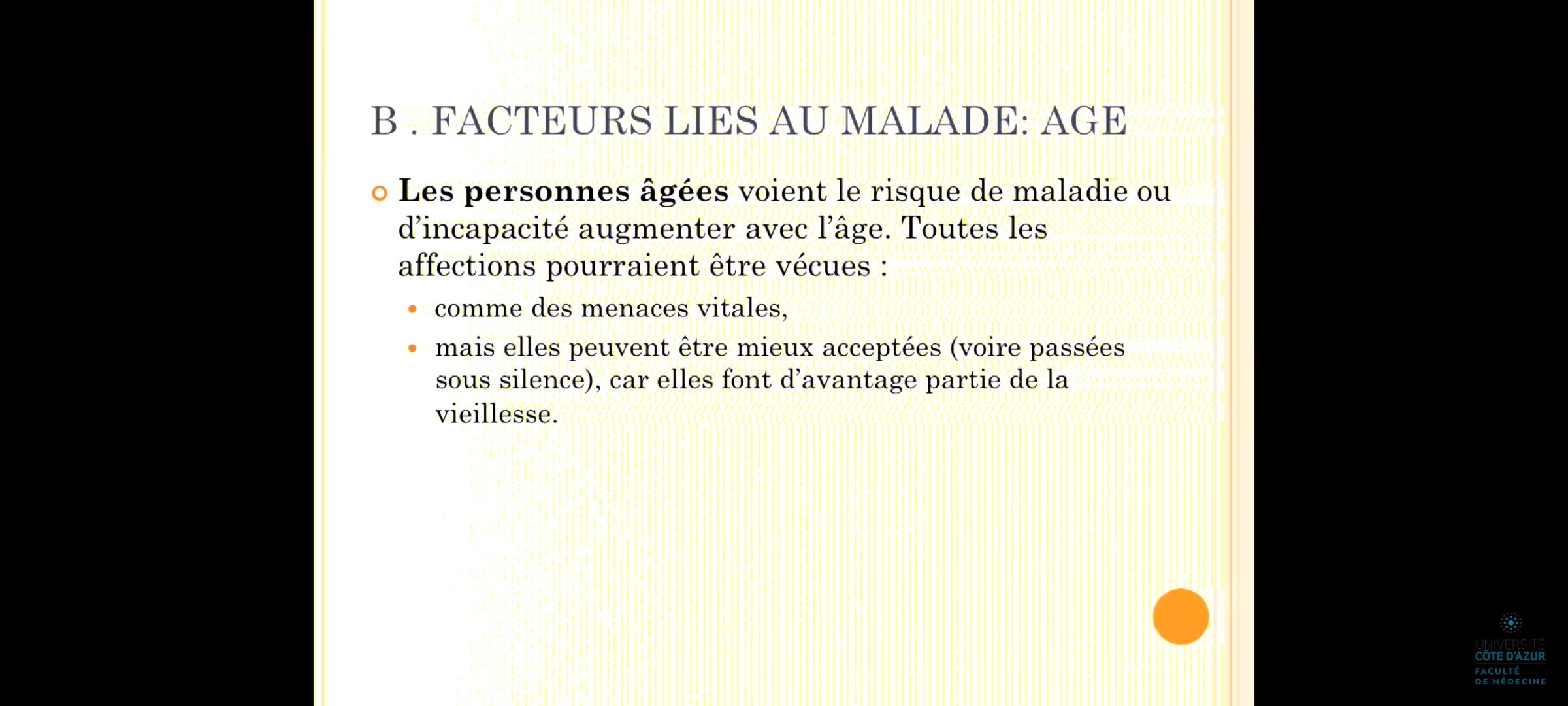 Étant donné que dans la fiche tut on peut y lire : "→Les personnes âgées : acceptent mieux la maladie (fait partie de la vieillesse)"