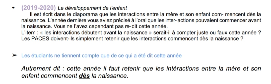 J'avais une question a propos du QCM 8, l'item "C) Toutes ces interactions commencent après l’accouchement" est compté faux comme des interactions entre la mère et le bebe commencent meme avant l'accouchement mais je me demandais juste comme dans le cours la prof dit que les interactions commencent "dès" l'accouchement est-ce qu'on doit quand meme se rappeler qu'elles commencent avant ?