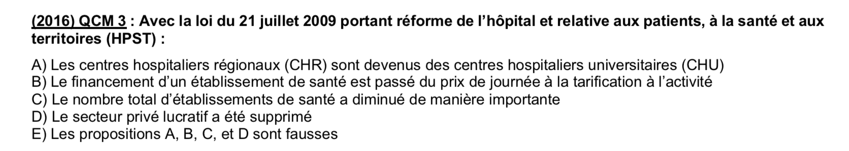 avec la loi de HPST le financement d'un établissement de santé est passé du prix de journée a la tarification à l'activité. @@