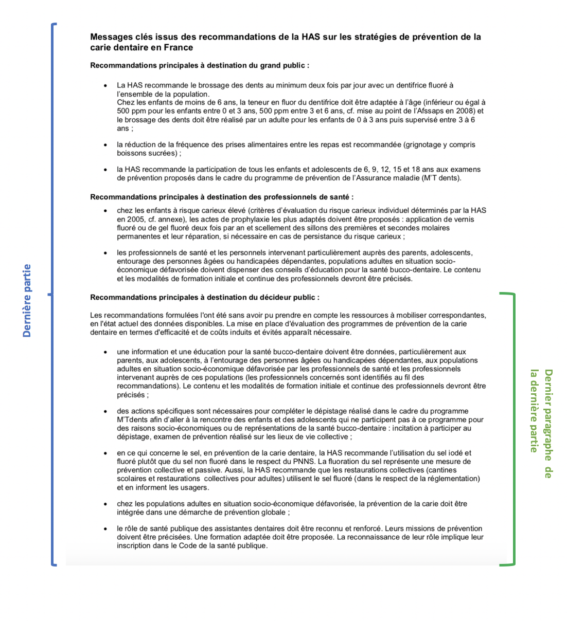 :arrow: d'une deuxième partie : "Messages clés issus des recommandations de la HAS sur les stratégies de prévention de la carie dentaire en France"