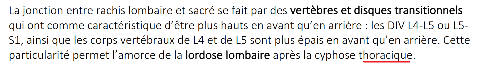 Mais le prof ne fais pas vraiment la différence : il veut surtout que vous reteniez que les vertèbres et disques transitionnels permmettent le changement de courbure entre lordose et cyphoses.