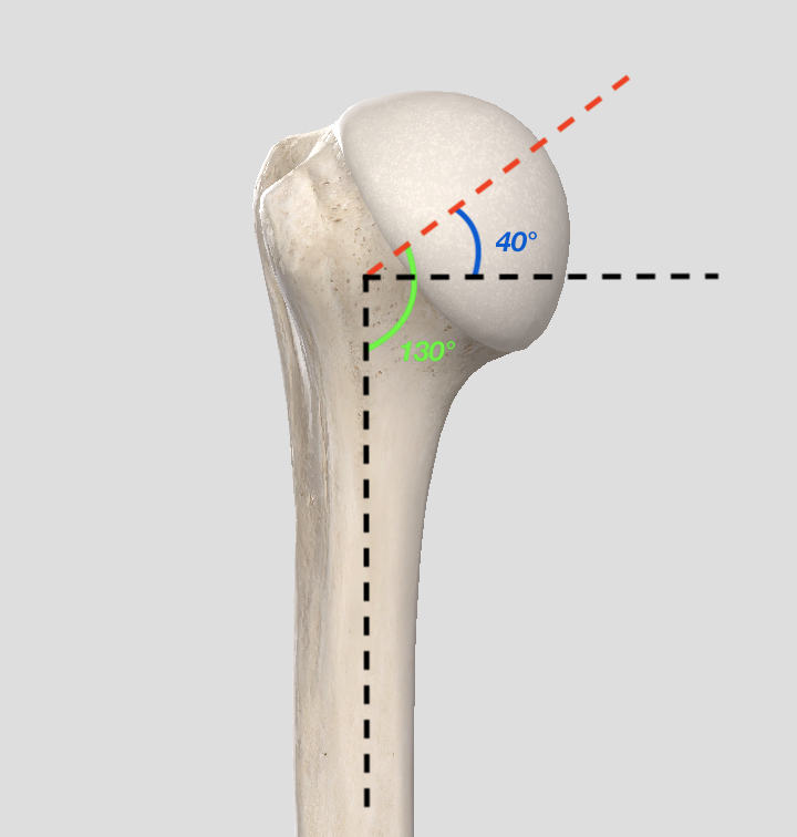 angle cervico diaphysaire 130 ° par rapport a l'axe de la diaphyse 40° par rapport a l'axe horizontal?