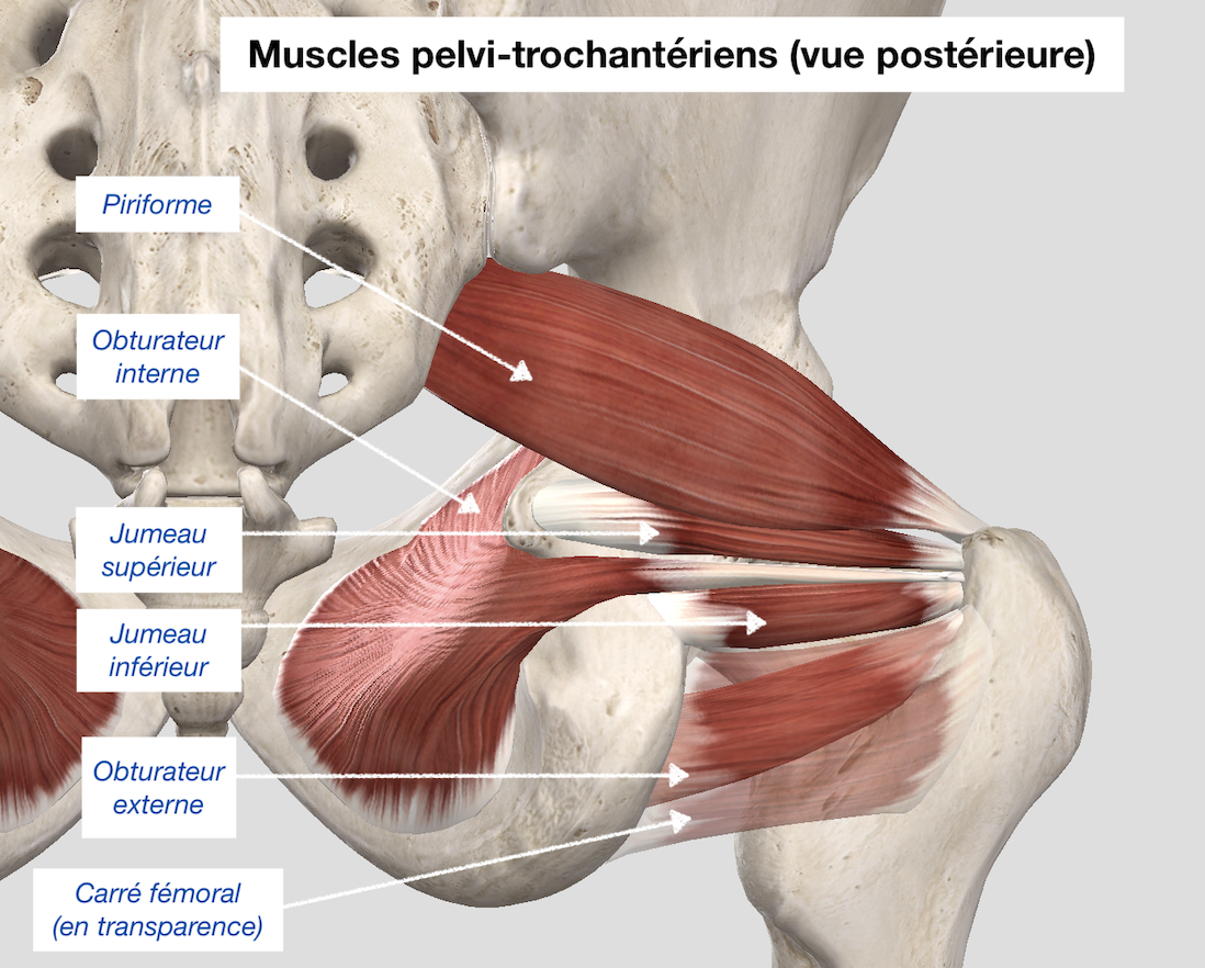 Du coup, les muscles jumeaux suivent le trajet de l'obturateur interne uniquement dans sa deuxième partie (en-dehors du petit bassin). Et oui, ils s'insèrent au même endroit que l'obturateur, mais uniquement au niveau de la fossette digitale du fémur, pas au niveau de l'os coxal.