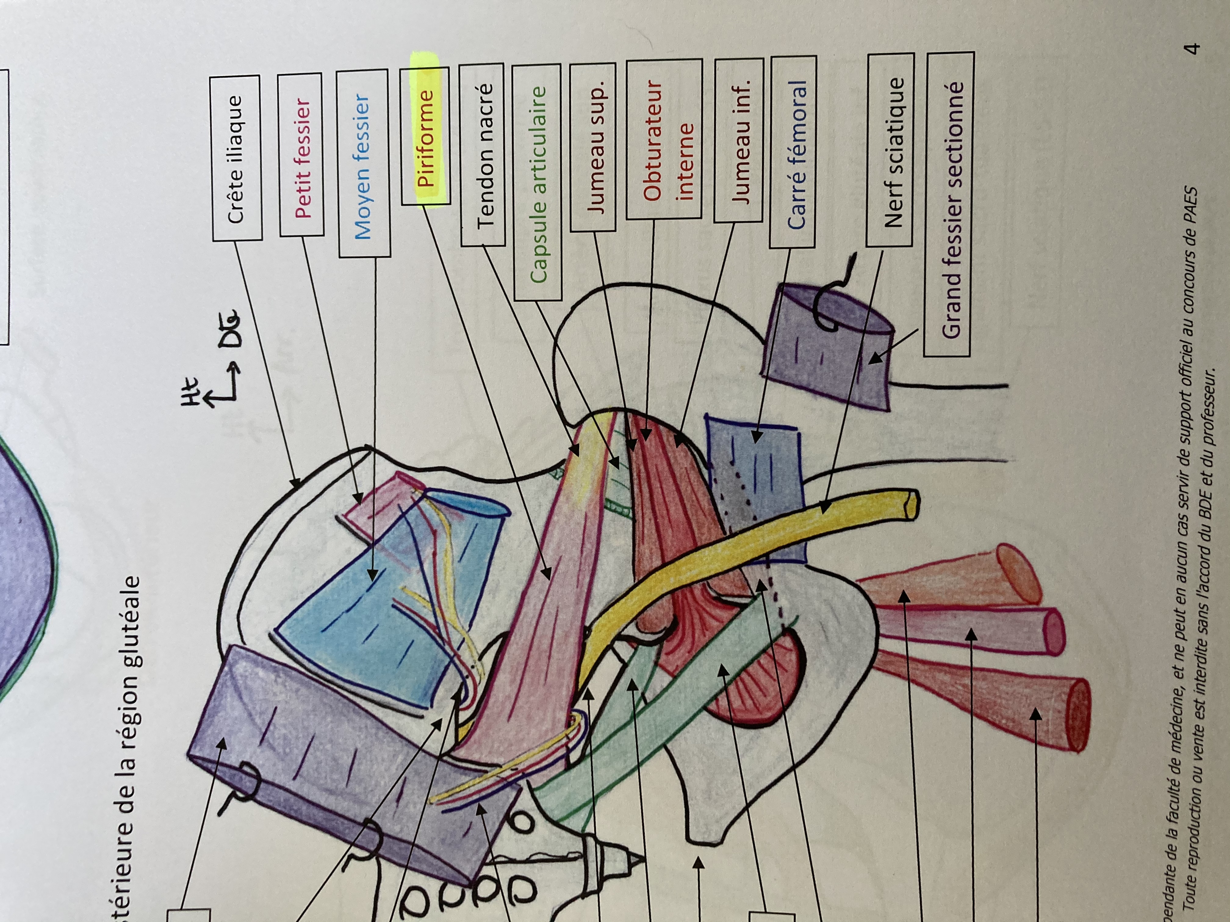 Dans la ronéo on nous dit que le piriforme passe en face postérieure du grand trochanter mais sur ce schéma on dirait qu’il passe en face antérieure du grand trochanter... ou alors je n’ai pas compris ou le grand trochanter se trouve