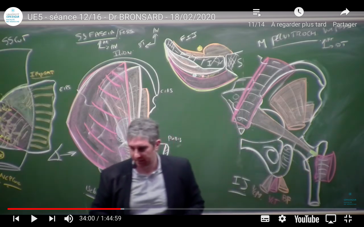 Le schéma qui est juste derrière le prof est en vue latérale, donc on y voit les trois muscles fessiers qui se superposent un peu.