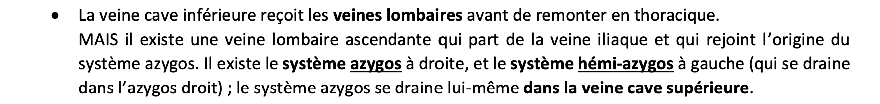 Slt, pour vous un item :" Toutes les veines lombaires se drainent dans la veine cave inférieure " est juste ou faux?!