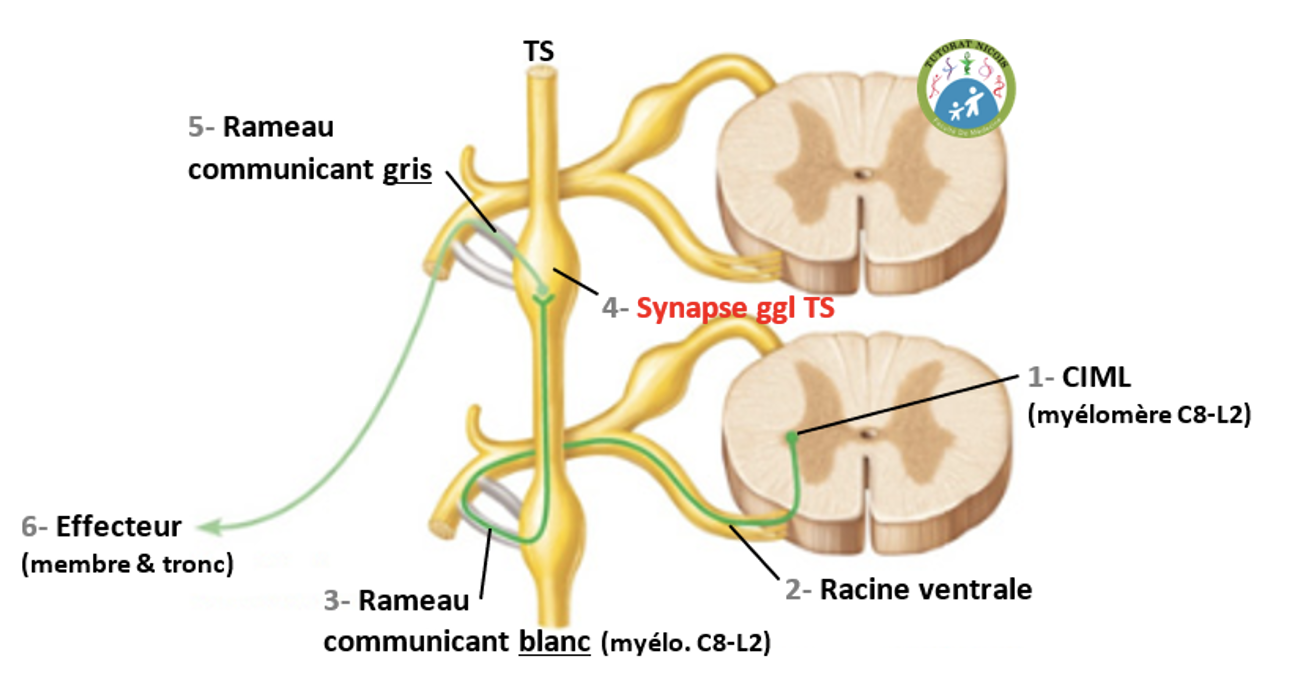 De ce que j'avais compris c'est le rameau communicant blanc qui relie nerfs spinal et tronc sympatique...