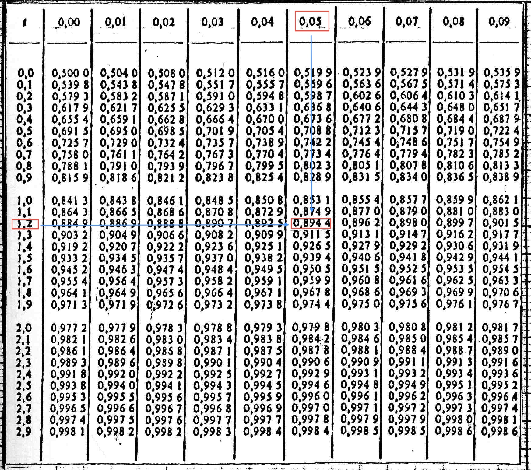 ar exemple, si on cherche P(Z ≤ 1,25 )On décompose, 1,25 = 1,2 + 0,05 :