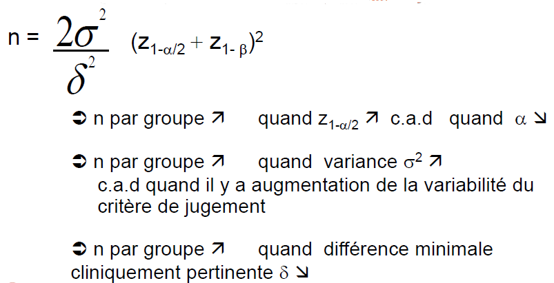 • De l’importance de la différence attendue entre les groupes comparés et de sa variabilité σ