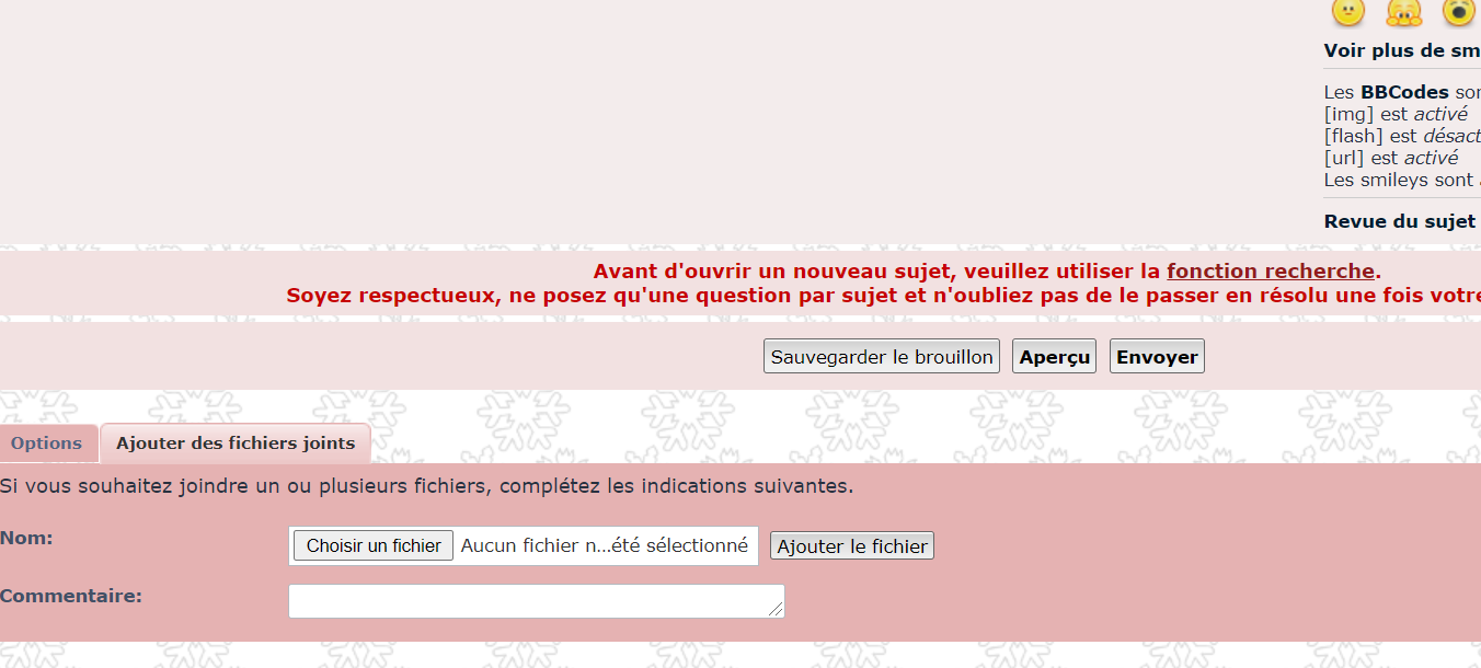 Tu as 2 petits onglet, dont un pour "ajouter des fichiers joints".