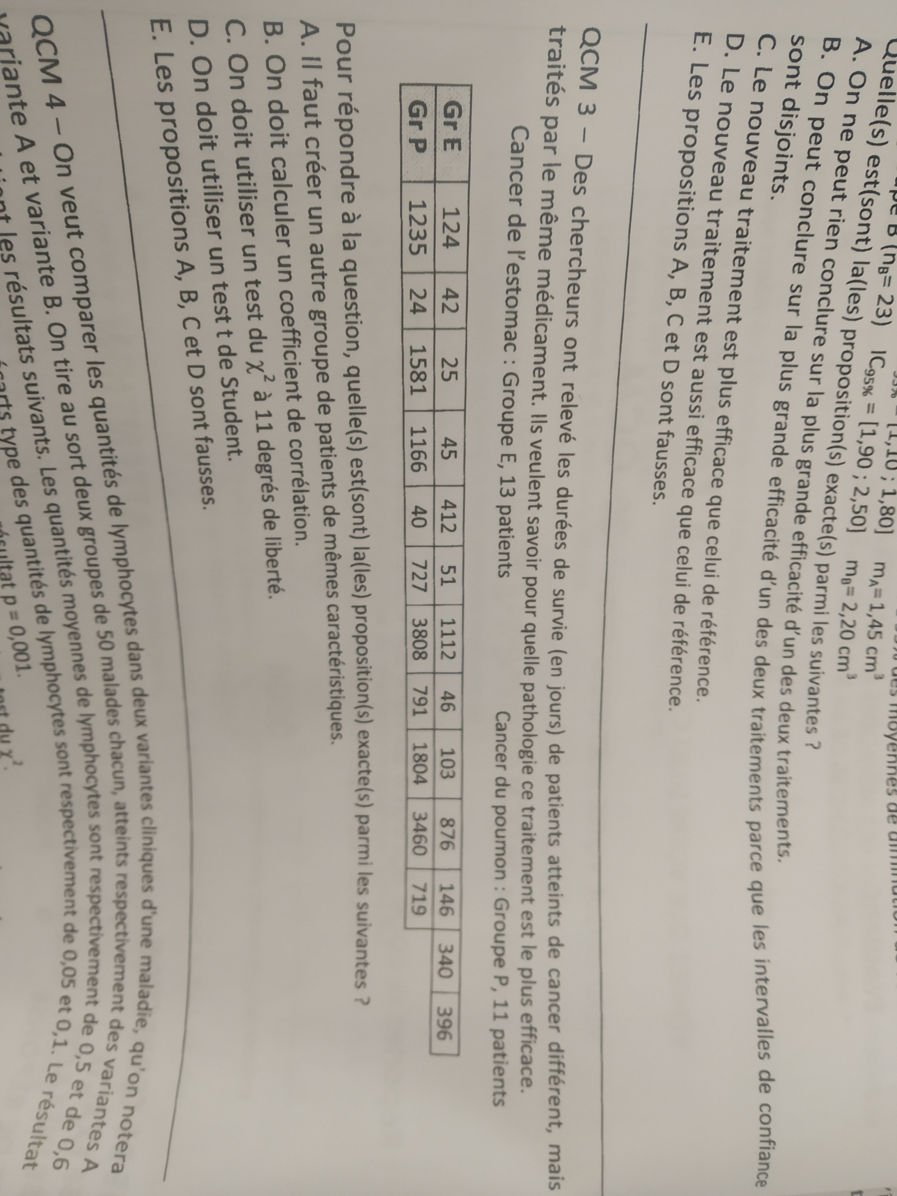 A priori je pense aussi , mais du coup ce qcm revient souvent dans les annales et en plus il est limite entre le t student et le Mann Whitney, et en plus les corrections divergent , c'est pour ca je voulais être sure