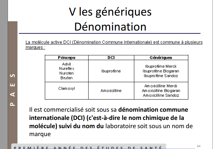 - Soit sous le nom de marque du médicament suivi du suffixe "gé".