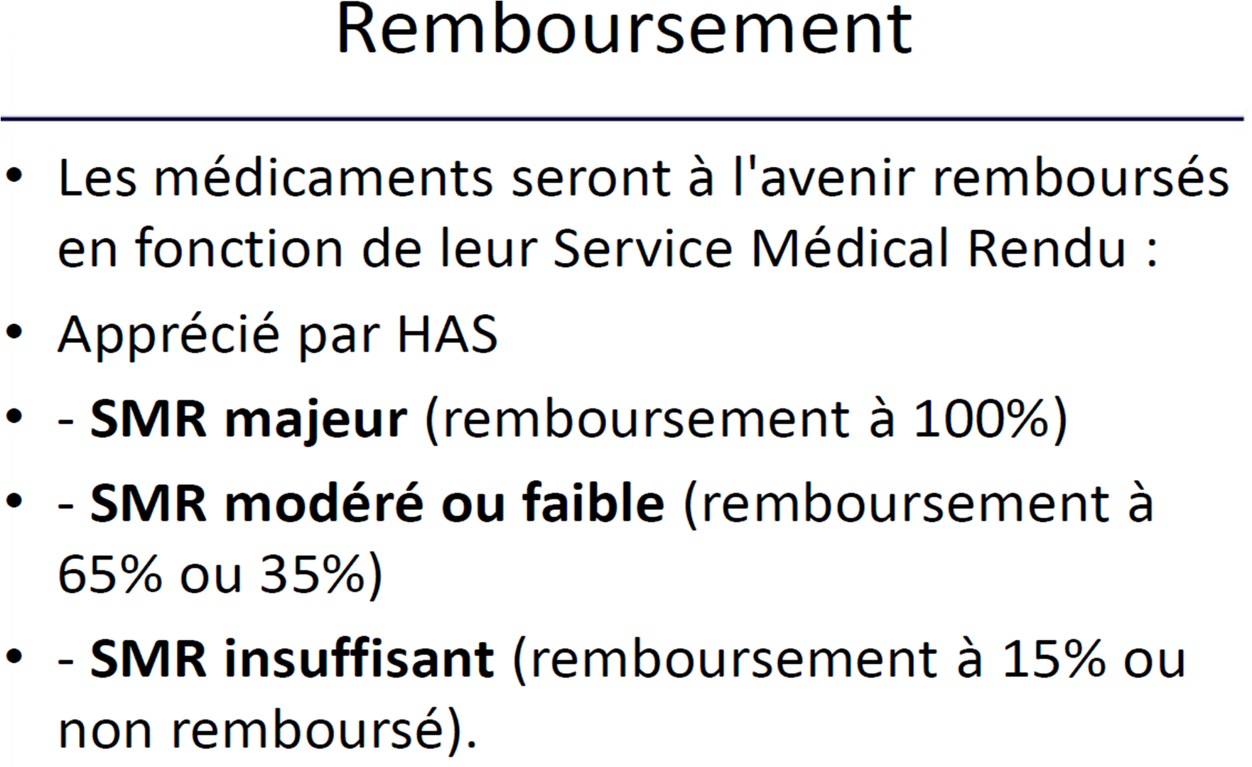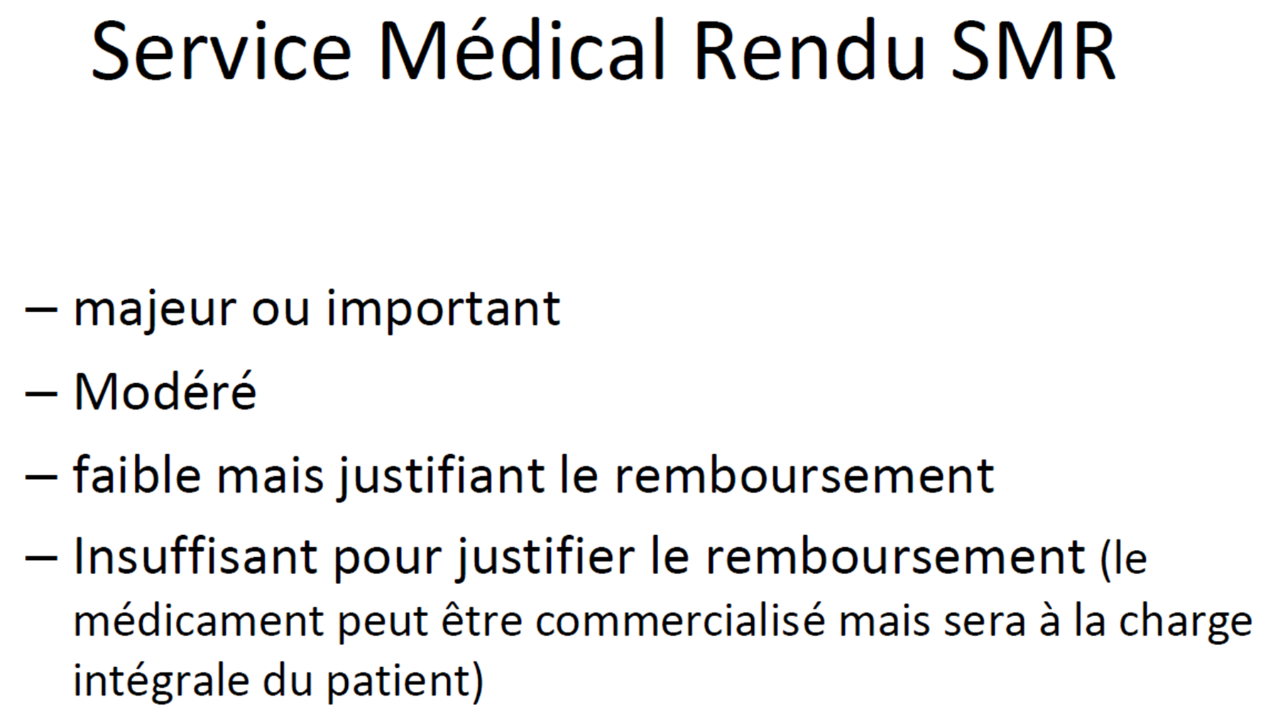 QCM 8 Item D : "Les médicaments à SMR faible ont un taux de remboursement de 15 à 35% (depuis 2007)