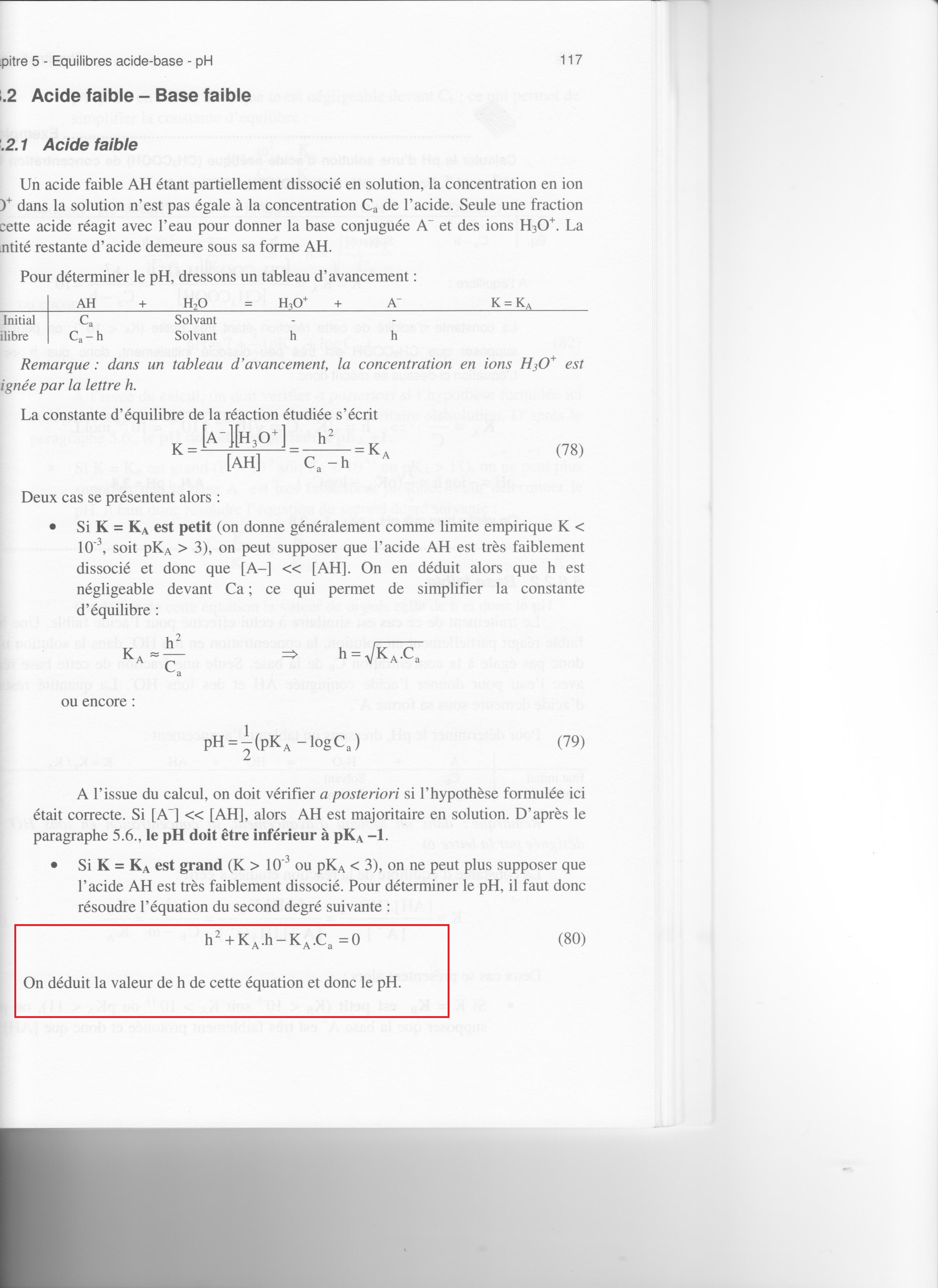 Mais comment fait-on pour passer dans le cas de l'ACIDE FAIBLE moyennement dissocié de "h" au ph