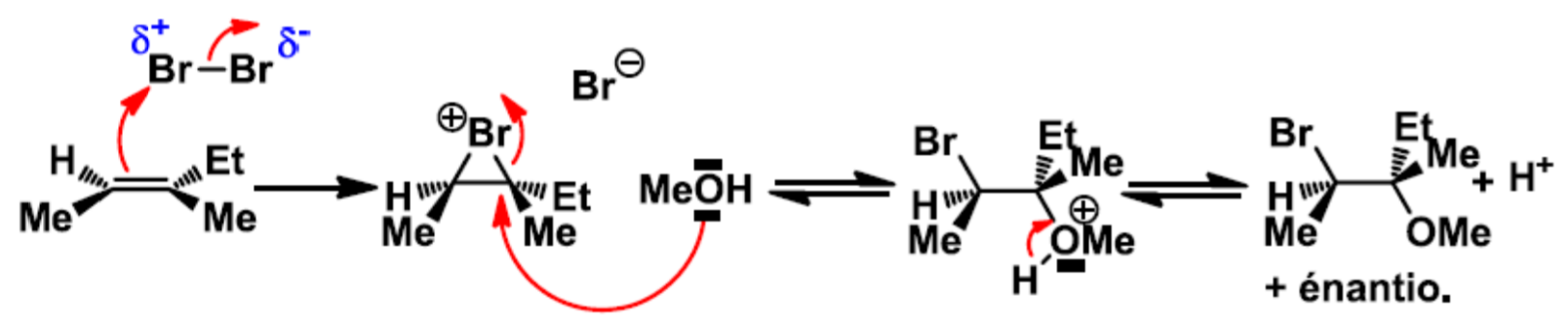 La première étape c'est la formation de l'ion bromonium ponté. Il peut se former soit
