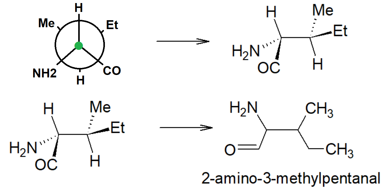 3, etc. Et là tu obtiens une molécule très facile à nommer : 2-amino-3-méthylpentanal. Donc l'item A est faux.