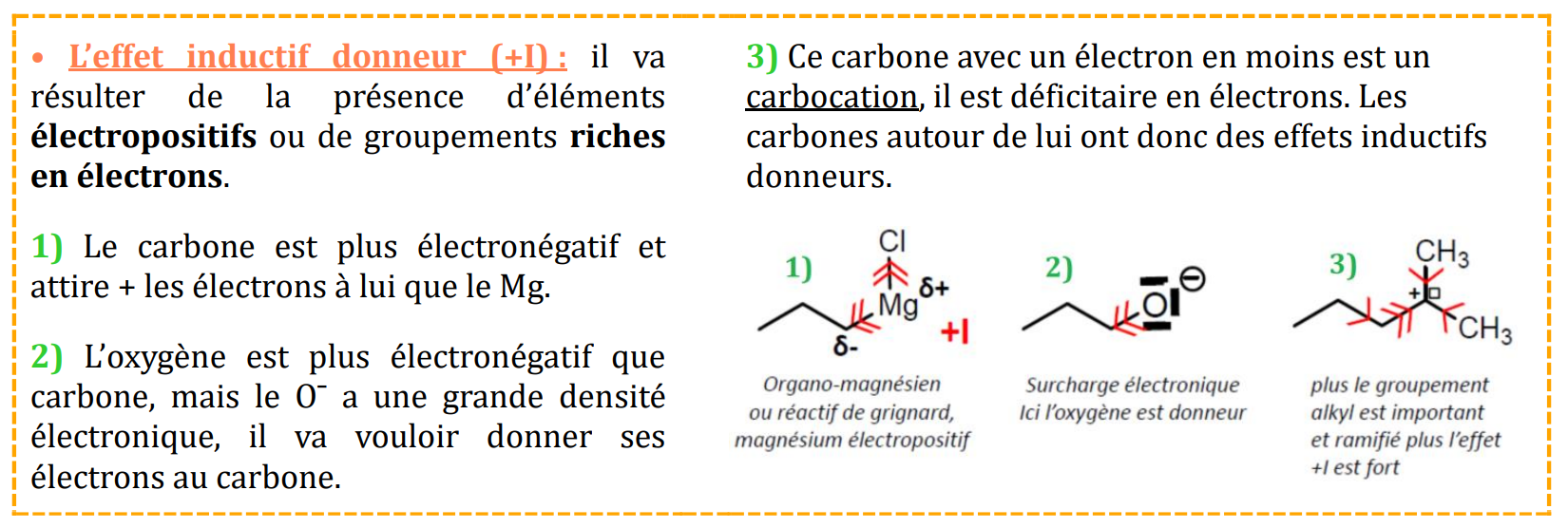 :arrow: Si tu as un atome électropositif ou un atome en déficit d'électrons -> effet inductif donneur
