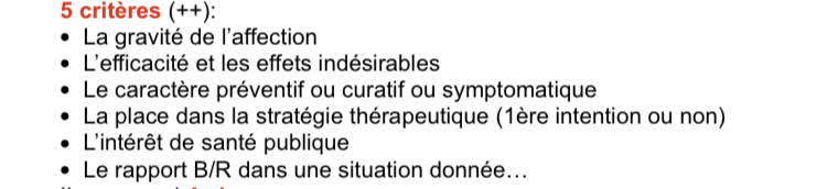 Edit : je viens de vérifier sur le diaporama du prof et il ne cite pas "le rapport B/R" donc cela fait bien 5 critères : gravité + efficacité et effet indésirable + caractère préventif, curatif ou symptomatique + place dans la stratégie thérapeutique + intérêt de santé publique