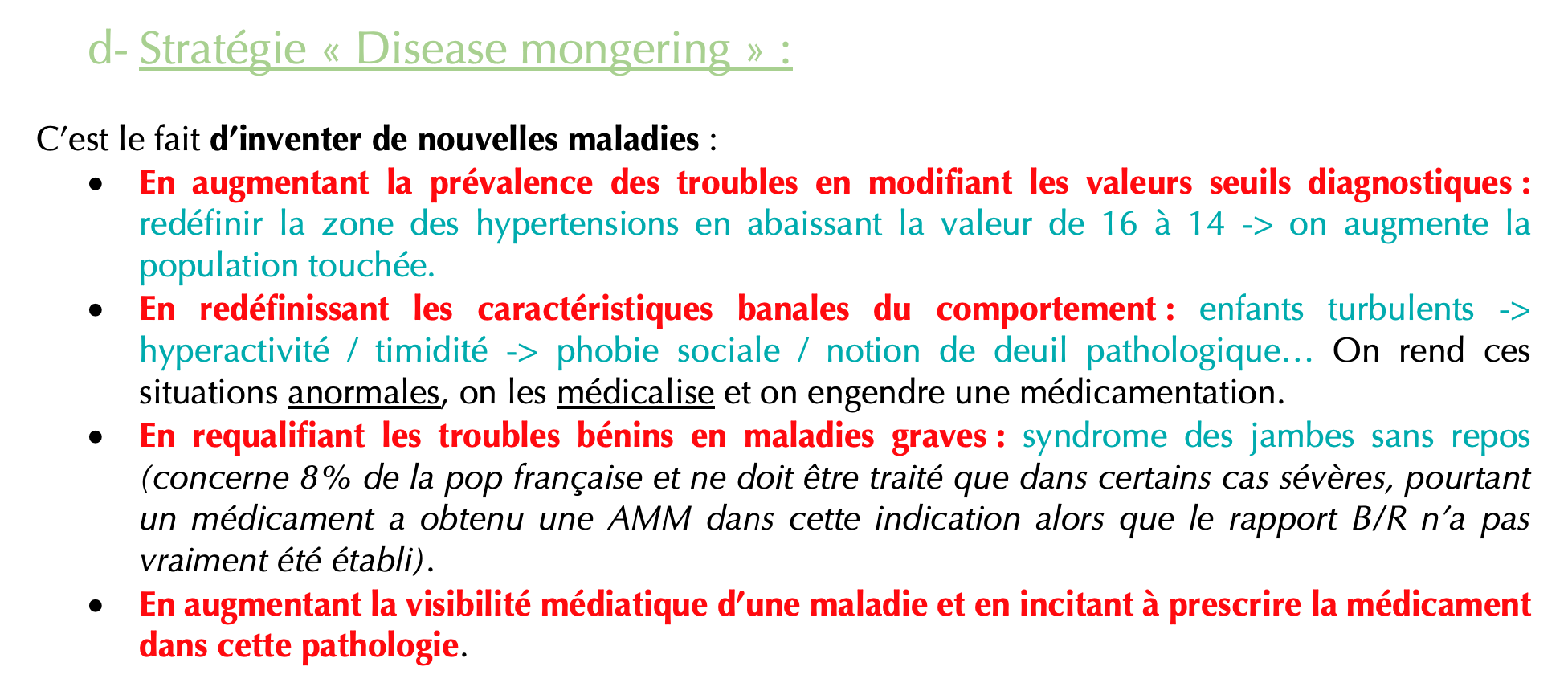 , J'ai une petite question à propos des stratégies utilisées par les industriels pour la fabrication de nouvelles maladies...