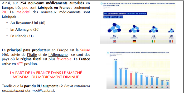 :!: Perso en PACES j'avais retenu que très peu de médicaments étaient fabriqués en France (20) et que la majorité l'étaient au RU (46). Et pour le deuxième schéma : que la Suisse était le prinicpal pays producteur d'Europe (et qu'elle avait le meilleur régime fiscale), que la France était en 4ème position et que sa part diminuait tandis que celle du RU augmentait.