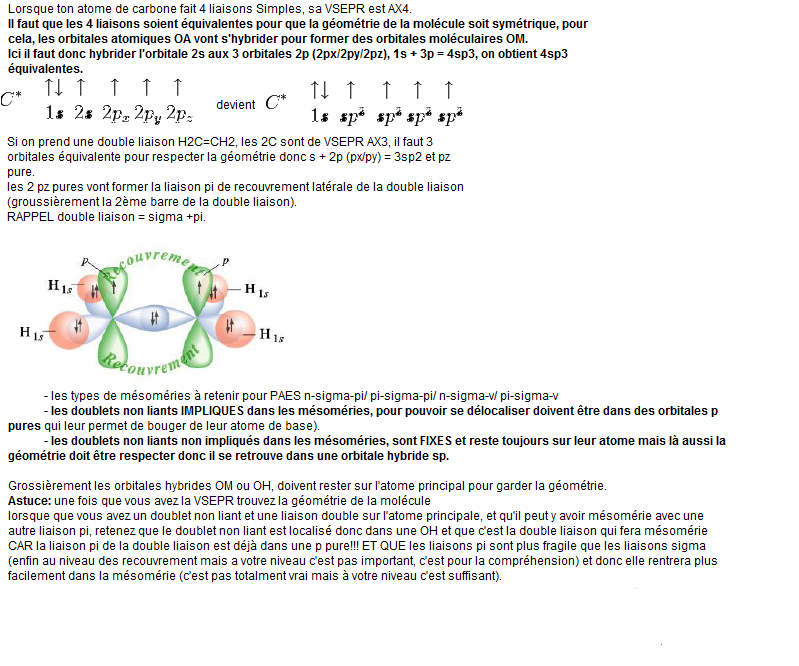 E car il a un doublet non liant. Il est de base, sans mésomérie hybridé sp2 donc 3 orbitale hybride type sp2 et une p pure.